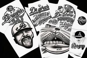 Dodgers tattoos typically represent a deep love and support for the Los Angeles Dodgers baseball team. They can symbolize loyalty, passion, and pride in being a fan. These tattoos often feature the Dodgers logo or team colors, and can be accompanied by other baseball imagery such as bats or baseball diamonds. A good location for a Dodgers tattoo could be on the arm or shoulder, as these areas provide a prominent and visible display of team allegiance. Below you will find a collection of dodgers tattoo design ideas for you to browse and get inspired by.