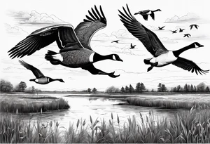 Geese tattoos can have multiple meanings, including loyalty and devotion, as geese are known for their strong bonds and lifelong partnerships. They can also symbolize teamwork and cooperation, as geese fly in a V formation, taking turns leading and providing support to each other. In some cultures, geese represent migration and travel, reflecting a desire for exploration and new experiences. Geese are also associated with protection and guardianship, as they are known to be alert and loud when danger approaches. Lastly, geese can symbolize family and community, as they are social animals that often gather together. Suitable locations for geese tattoos include the forearm, representing loyalty and strength, or the back, symbolizing protection and guidance. Below you will find a collection of geese tattoo design ideas for you to browse and get inspired by.