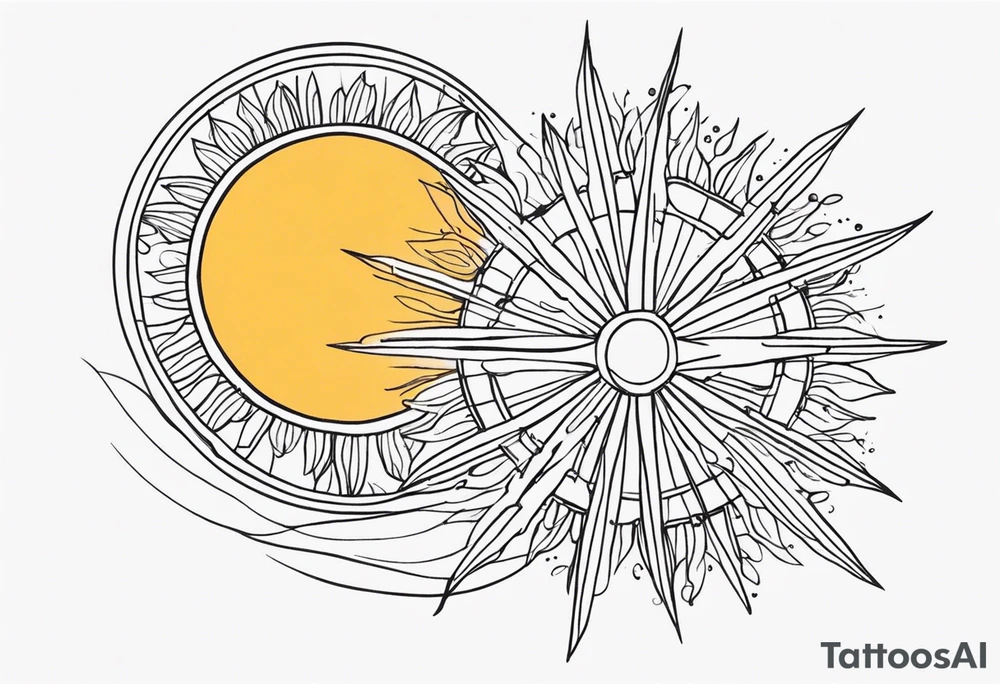 Draw me a beautiful and realistic sun tattoo using the ONE LINE method.
